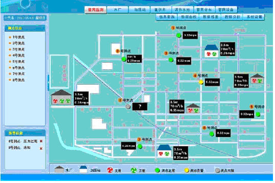 城市供水管網(wǎng)監(jiān)測(cè)系統(tǒng)適用于供水企業(yè)遠(yuǎn)程監(jiān)測(cè)供水管網(wǎng),工作人員可以在供水公司調(diào)度中心遠(yuǎn)程監(jiān)測(cè)全市供水管網(wǎng)的壓力及流量情況。科學(xué)指揮各水廠啟停供水設(shè)備,保障供水壓力平衡、流量穩(wěn)定;及時(shí)發(fā)現(xiàn)和預(yù)測(cè)爆管事故的發(fā)生。